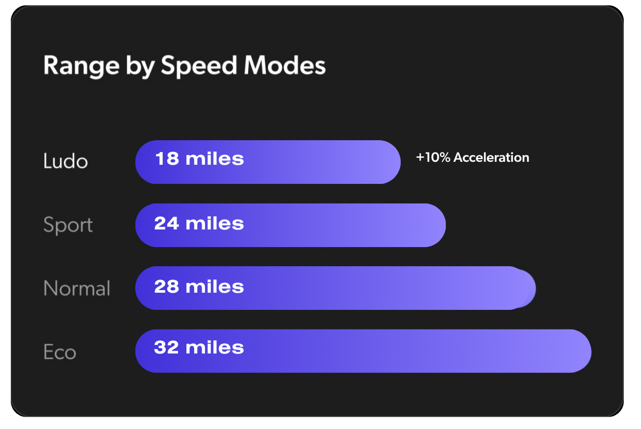 Actual range will vary based on rider weight, speed, terrain, and conditions. Estimates are based on an average rider at a steady pace.